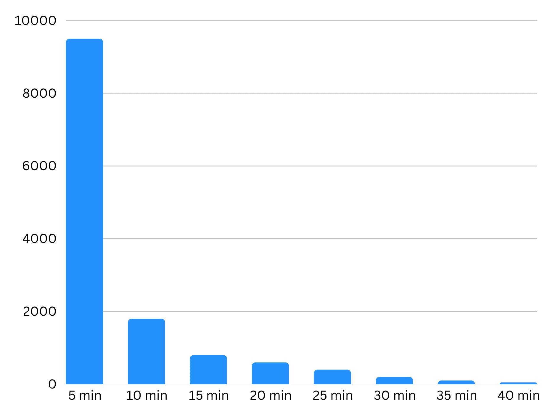 Conversion rate decreases 100X within the first 5 minutes vs 6+ minutes.